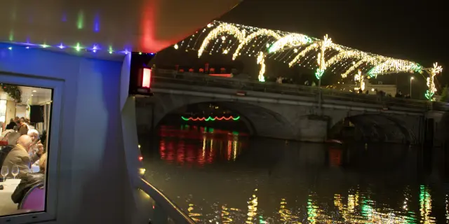 Embarquez à bord du Vallis Guidonis, juste avant la mise en lumière, et profitez des commentaires du capitaine qui vous présentera la ville au fil de l’eau… - Diner Croisière des lumières. Profitez, le temps d’une croisière, d’un instant privilégié. Bercés par la magie des Lumières de Laval, vous dégusterez un menu de fête tout en naviguant sur la Mayenne. Une expérience incontournable des illuminations lavalloises !