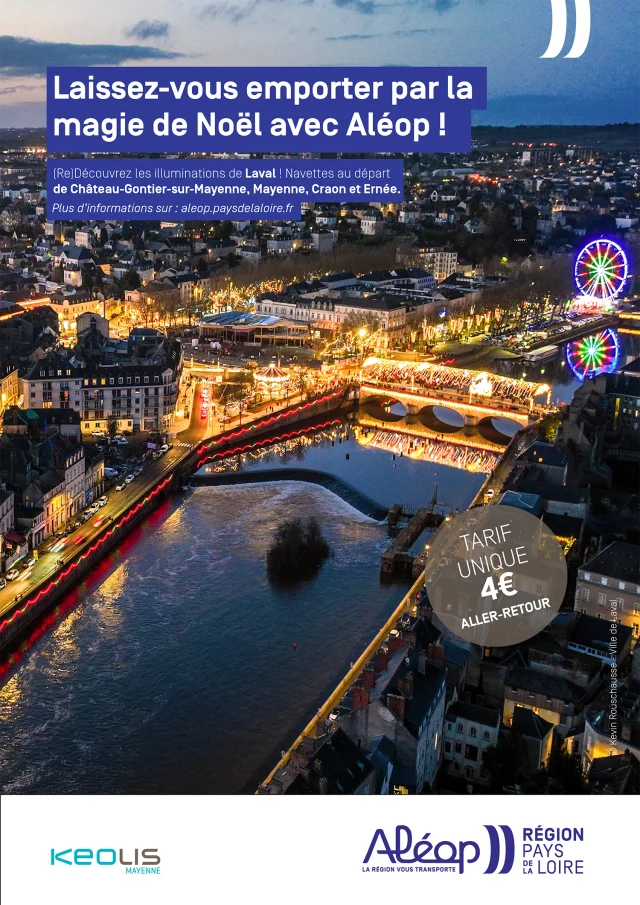 Enjoy a special moment on a cruise. Lulled by the magic of the Illuminations of Laval, you’ll enjoy a festive menu as you cruise along the Mayenne. A not-to-be-missed experience of Laval’s illuminations!